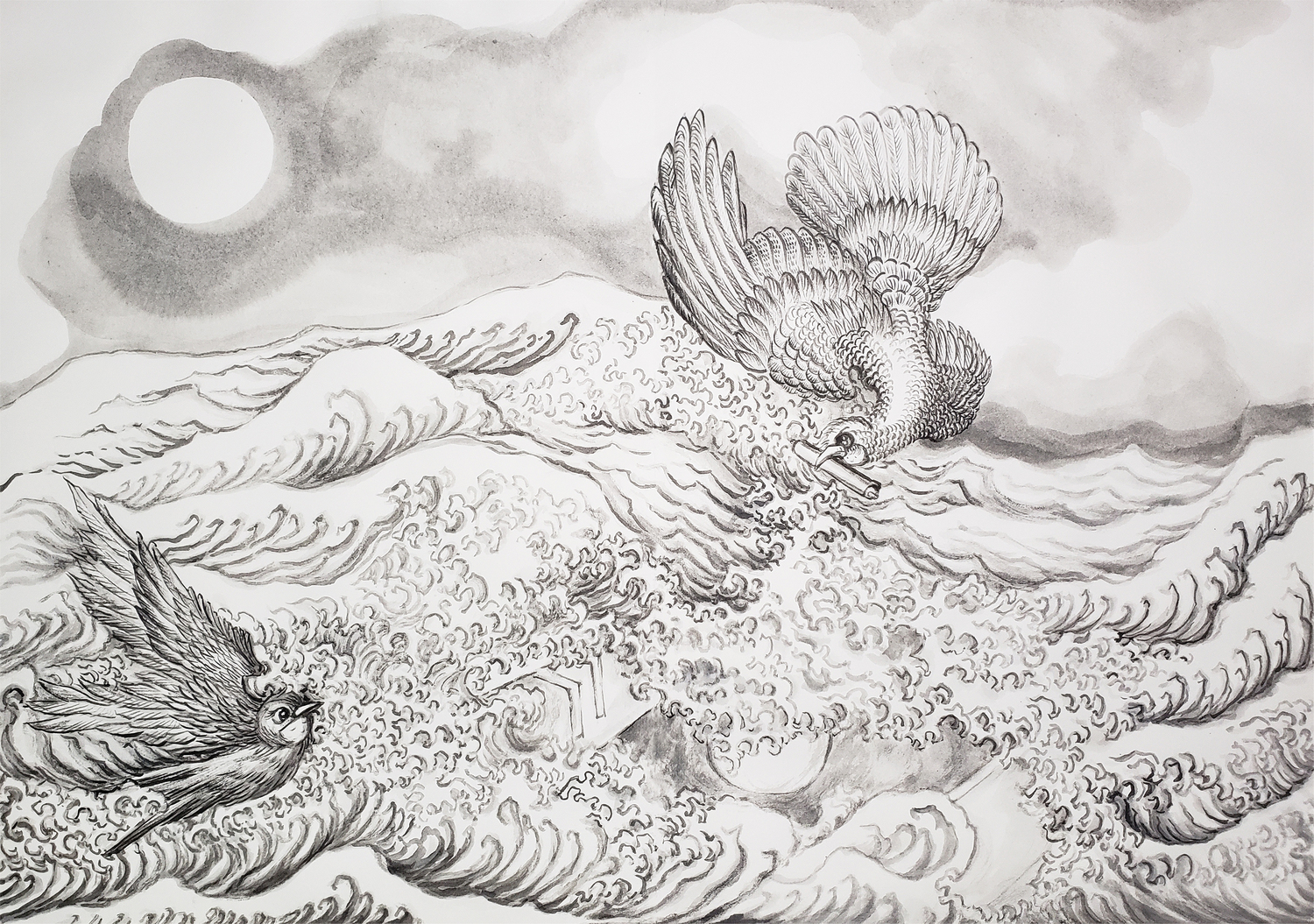 Chinese ink and acrylic on paper
