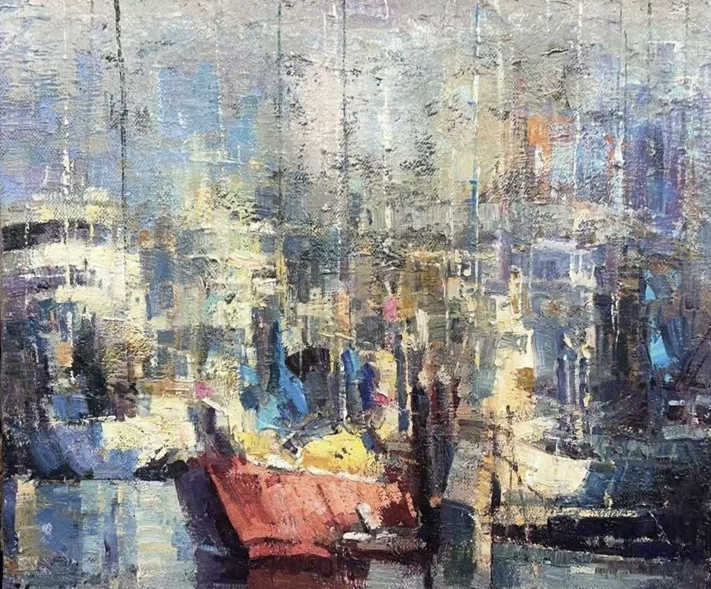 左夫 Jove Wang打魚歸來/夏日海港31 x 51 cmOil on canvas 油畫布本$69,000.00