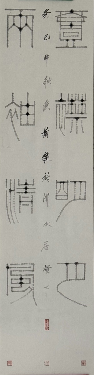 黃孝逵 Wong Hau-kwei一襟明月 兩袖清風 Paint in Calligraphy: Bright Moon on my Collar, Pure Wind in my Sleeves138 x 34 cmInk on paper$48,000.00