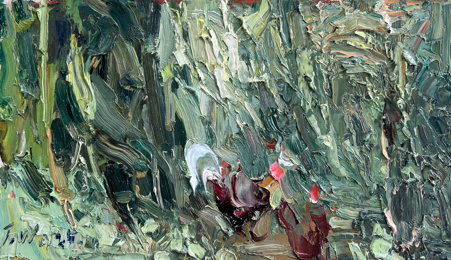 左夫 Jove Wang雨米地的兩只雞43 x 52 cmOil on canvas 油畫布本$56,000.00